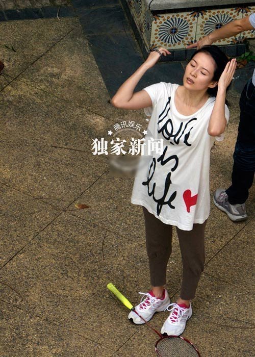 Trong khuôn viên khách sạn được bao riêng cho các nhân viên trong ê kíp, Chương Tử Di chủ động rủ một đồng nghiệp nam xuống sân chơi cầu lông. Sau mỗi hiệp đánh, cô lại tới gần chú cún cưng vỗ về âu yếm. Nét mặt vui vẻ và tâm trạng thư giãn của Chương Tử Di dường như chẳng hề vướng bận hay bị ảnh hưởng bởi “sóng gió” thị phi.