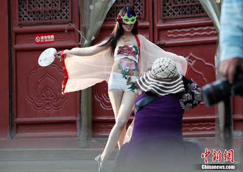 Những người này chụp ảnh cho một người mẫu nữ, trên mình thể hiện một bức họa hoa lá. Những người tổ chức chương trình này cho rằng, hoạt động của họ là vì nghệ thuật và nhằm "thách thức những giá trị văn hóa thấp".