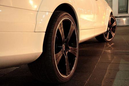 Bộ la-zăng màu đen có mép màu trắng tạo sự tương phản màu sắc khi xe lăn bánh trên đường. La-zăng cơ 10×22 inch đi cùng lốp 295/30-22. Bộ piston phanh được sơn đỏ.