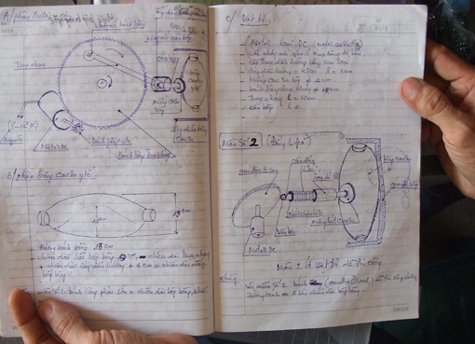Bản thiết kế chiếc máy bóp bóng trợ thở y tế của anh Hoạt. |