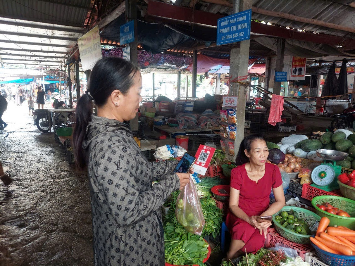 Bà Lý Thị Thuỷ, một hộ kinh doanh thực phẩm thường xuyên tại Chợ chia sẻ: “Tôi kinh doanh ở đây rất lâu rồi, từ trước đến nay hầu hết khách mua hàng đều thanh toán bằng tiền mặt. Nhưng thời gian gần đây, có nhiều khách hàng có nhu cầu thanh toán tiền bằng chuyển khoản, nhất là những người trẻ, hiện tại chỉ có một bộ phận nhỏ người già. Khi triển khai mô hình chợ 4.0, tôi và các hộ kinh doanh khác được Ngân hàng hỗ trợ tạo mã QR phục vụ việc chuyển khoản rất thuận tiện. Người mua thì không phải mang theo nhiều tiền mặt, tránh nguy cơ mất mát, người bán thì không phải lo tiền lẻ, tiền bù, tránh được nhầm lẫn. Tôi thấy mô hình chợ 4.0 rất là thuận tiện cho tiểu thương chúng tôi”.