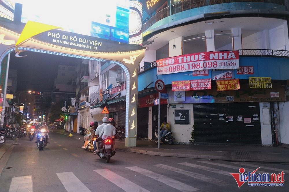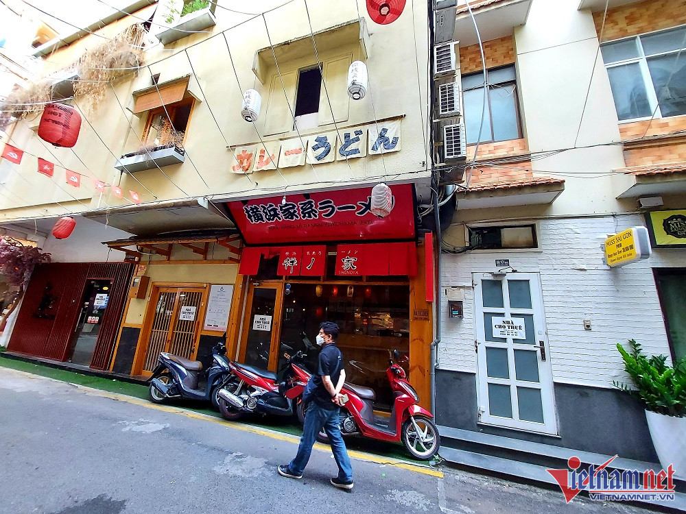 Trong khi đó, cách phố đi bộ Bùi Viện khoảng 8 phút chạy xe máy là con hẻm dẫn vào khu phố Nhật trên đường Thái Văn Lung (quận 1), 4 nhà hàng liền kề đều đang dán biển cho thuê cửa hàng. Chủ kinh doanh cũ đã không thể cầm cự nổi sau đại dịch, buộc trả lại mặt bằng.