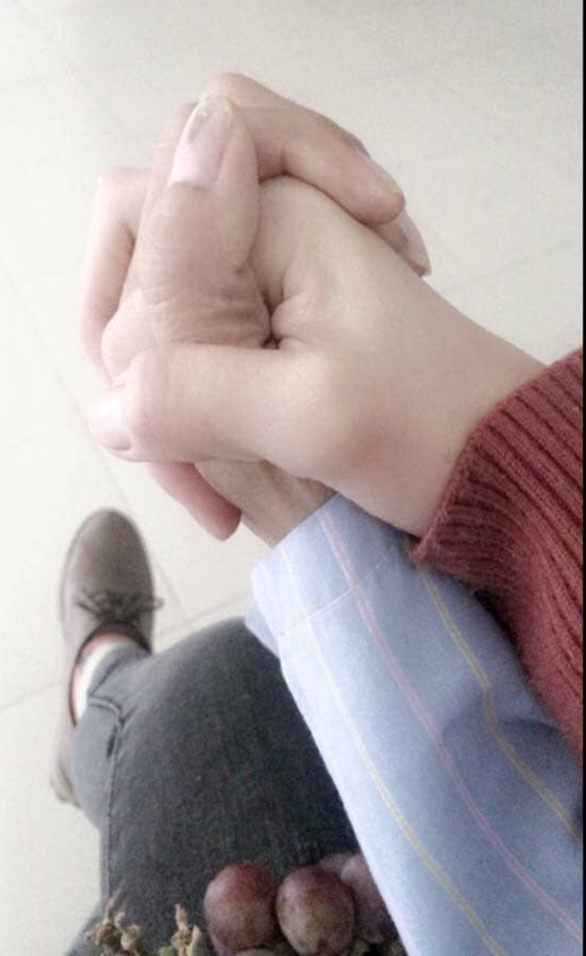 Trong nỗi buồn vô hạn, chị Na xem lại bức ảnh “cái nắm tay cuối cùng với bố” mà chị chụp trong bệnh viện vào 4 năm trước.