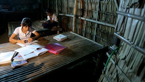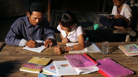 Cô học trò người Khơ Me chỉ có cách tận dụng tối đa thời gian buổi tối để ôn bài, kèm cặp em gái học và thậm chí là dạy chữ cho ba.