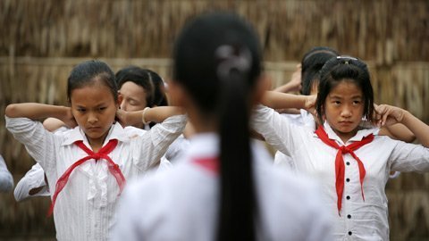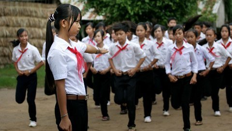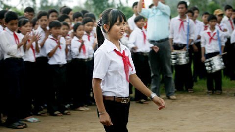 | Trong những buổi tập nghi thức Đội, cô học trò người Khơ Me rất nghiêm túc và có uy. |
