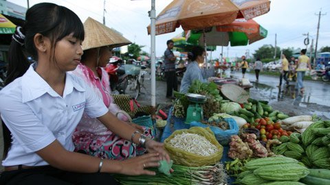Ngoài giờ học tập ở trường, đầu giờ sáng, cuối giờ chiều Huyền Trân đều đặn phụ ba, má bán rau củ ở khu chợ nằm ven quốc lộ 60.