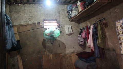 Thu nhập hàng ngày cũng chẳng đáng là bao, nhưng đủ để bà trang trải cuộc sống. Bà Sinh sống chung phòng trọ với hai cô khác, cũng là những người ở tỉnh lẻ ra thủ đô làm thuê, khu trọ khá chật chội ở ngay dưới chân cầu Long Biên, phòng chưa đầy 15m2, chỉ đủ để đặt một chiếc giường và một vài đồ linh tinh, còn những đồ đạc khác đều phải treo lên tường…ấy thế mà bà cũng đã gắn bó với nó suốt 7 năm qua.