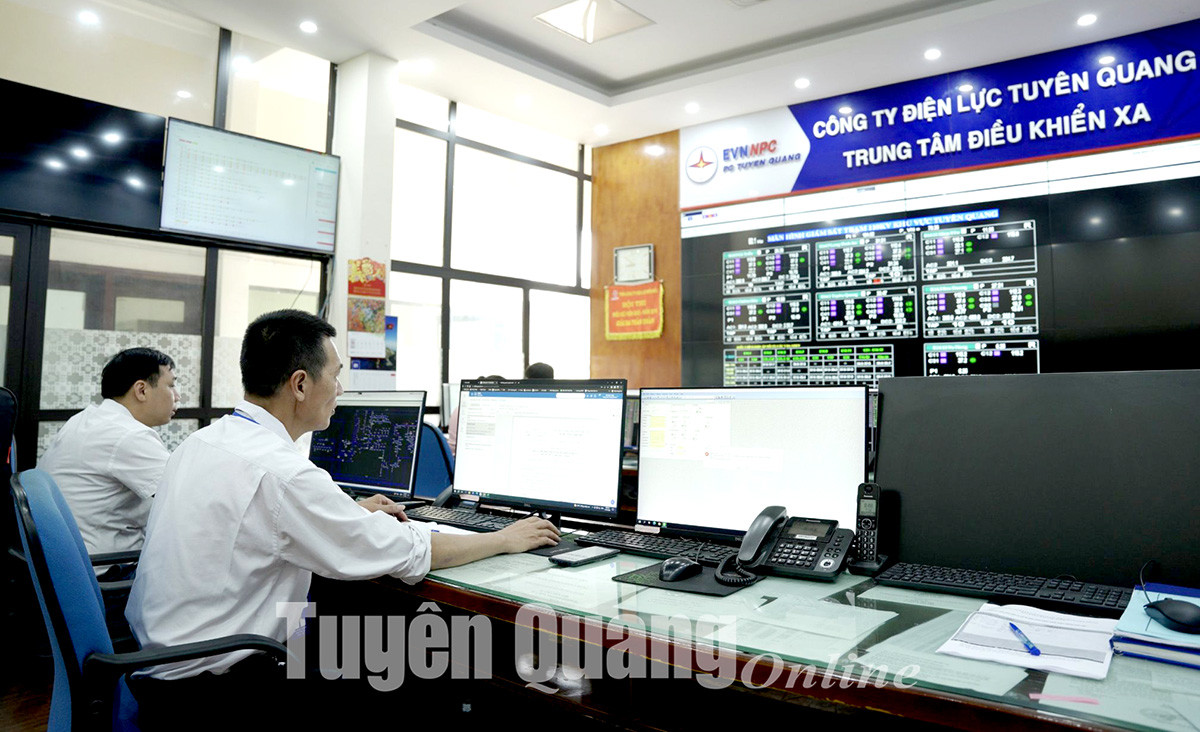 Vận hành hệ thống lưới điện từ Trung tâm điều khiển từ xa tại Công ty Điện lực Tuyên Quang.