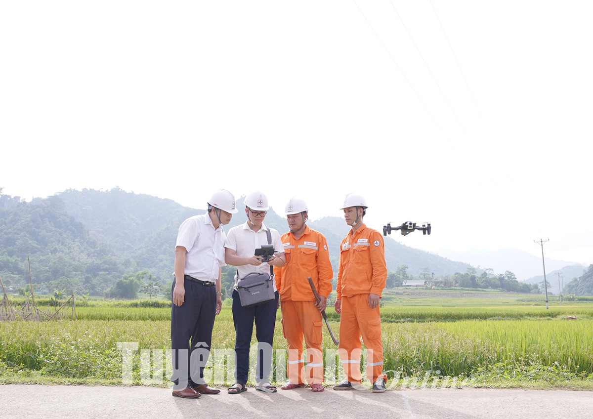 Điện lực Chiêm Hóa sử dụng flycam để kiểm tra vận hành lưới điện.