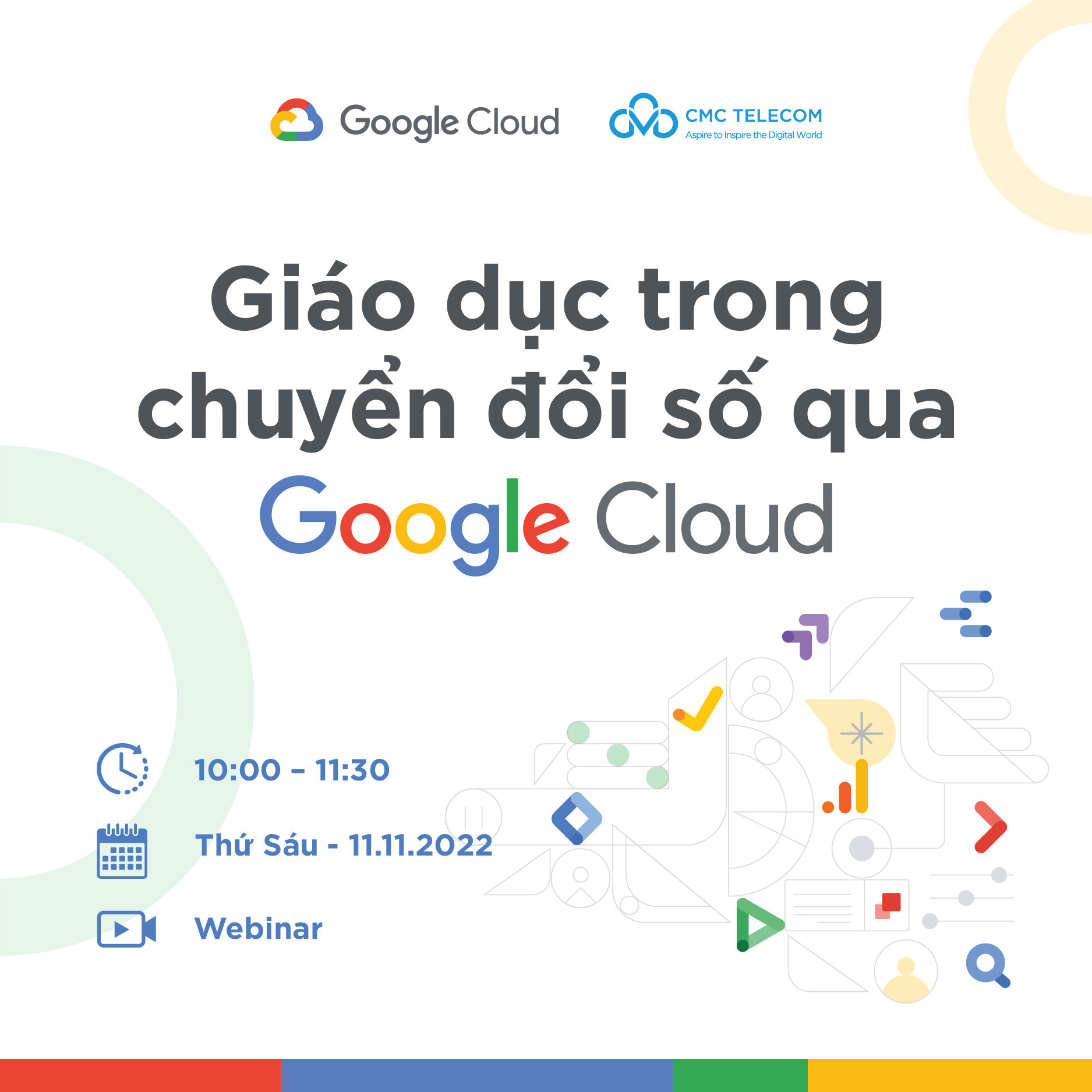 Hội thảo "Giáo dục trong chuyển đổi số thông qua Google Cloud" do CMC Telecom phối hợp Google tổ chức ngày 11/11/2022 sẽ cho thấy bức tranh toàn diện về: xu hướng công nghệ giáo dục mới; cách thức ứng dụng công nghệ đám mây để đảm bảo chất lượng giáo dục; chủ động học tập, nâng cao hiệu quả, năng suất cho công tác quản lý, tuyển sinh, đào tạo mọi lúc mọi nơi; từ đó phục vụ đa dạng nhu cầu của ngành giáo dục trên môi trường số.