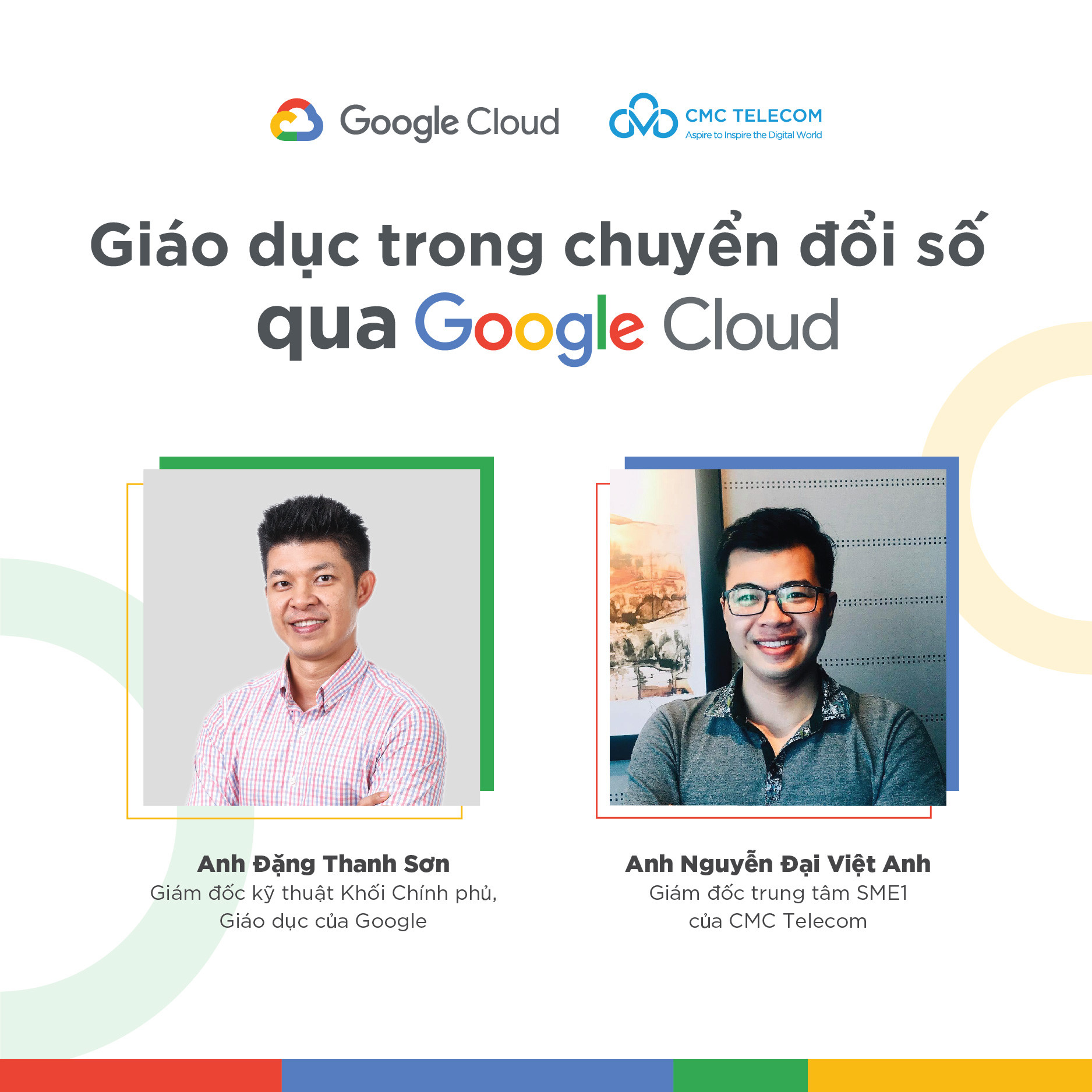 Sự kiện do CMC Telecom và Google phối hợp tổ chức, hướng đến những doanh nghiệp quan tâm, mong muốn ứng dụng số hóa trong lĩnh vực giáo dục. "Giáo dục trong chuyển đổi số thông qua Google Cloud" được tổ chức miễn phí qua Google Meet.