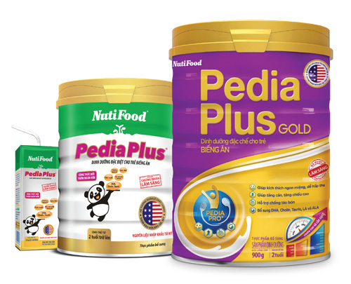 Sản phẩm Pedia Plus Gold mới ra đời cũng là tâm huyết của các Chuyên Gia NutiFood dành cho trẻ biếng ăn với sự am hiểu tường tận thể trạng trẻ em Việt Nam. PediaPlus đã được chứng nhận lâm sàng hiệu quả sau 8 tuần giúp bé ăn ngon miệng, hỗ trợ sức khỏe hệ tiêu hóa và sức đề kháng giúp trẻ phát triển nhanh và tốt hơn về cân nặng và chiều cao. Nay sản phẩm dinh dưỡng nhãn hiệu Pedia Plus Gold - dinh dưỡng đặc chế cho trẻ biếng ăn, với công thức cải tiến PEDIA PRO+ giúp hỗ trợ sức khỏe tổng thể, kích thích ngon miệng dễ hấp thu, giúp tăng cân tăng chiều cao và hỗ trợ chống táo bón giúp trẻ nhanh chóng bắt kịp đà tăng trưởng.