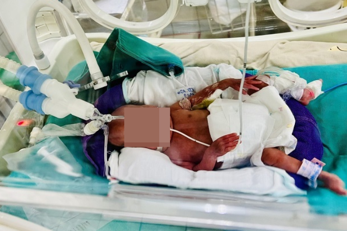 Bé được đưa xuống cấp cứu tại Trung tâm Nhi khoa, người mẹ về buồng hồi sức. Sau 7 ngày, chị được vào thăm con. Khoảnh khắc đầu tiên, người mẹ nhìn thấy con quá nhỏ, các máy móc thiết bị, dây truyền chằng chịt được cắm, kẹp lên đôi tay, đôi chân bé xíu.