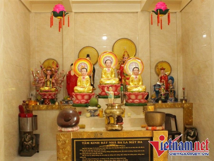 Đối diện với điện thờ Phật, chùa lập hương án, dựng bài vị làm nơi tổ chức cúng vong linh cô hồn.