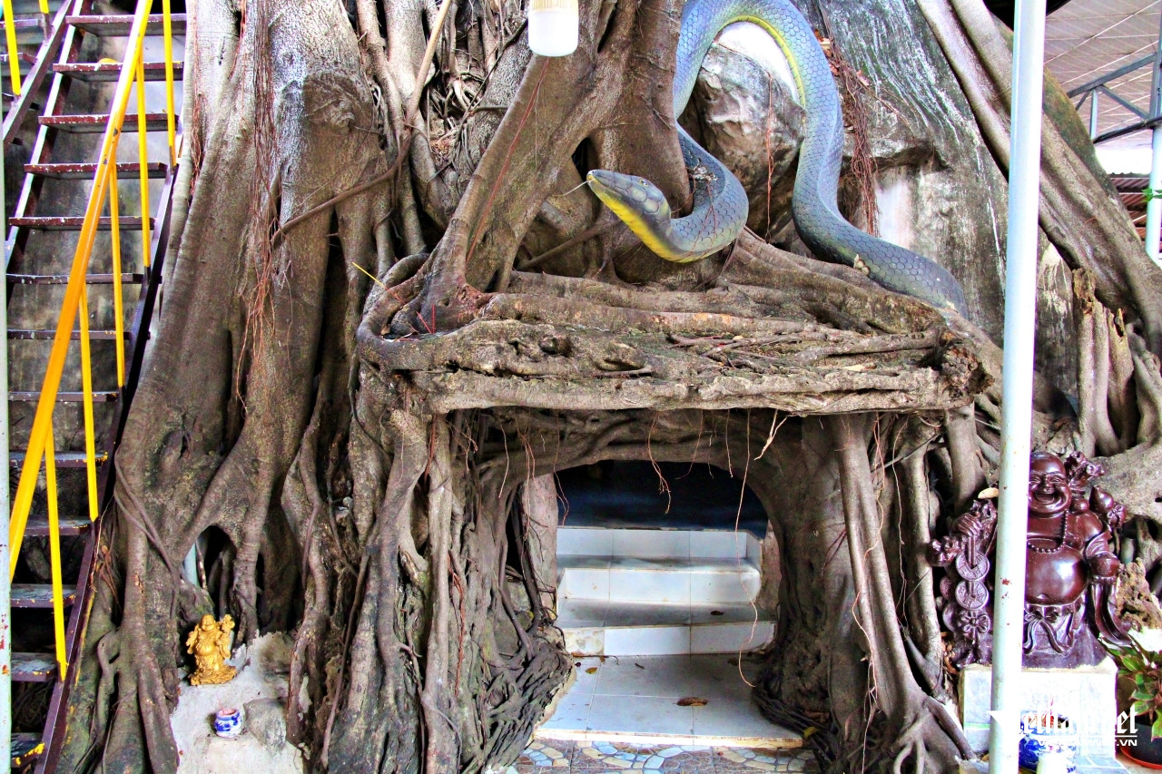 Cặp rắn sinh sống dưới gốc cây và thường bò ra khỏi hang, ra ruộng lúa phía trước chùa kiếm ăn vào mỗi chiều tối. Đến khuya, đôi rắn lại bò trở lại hang.