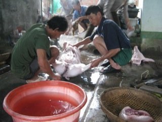 | Hùn tiền mua con heo ở địa phương rồi làm thịt cúng tất niên |