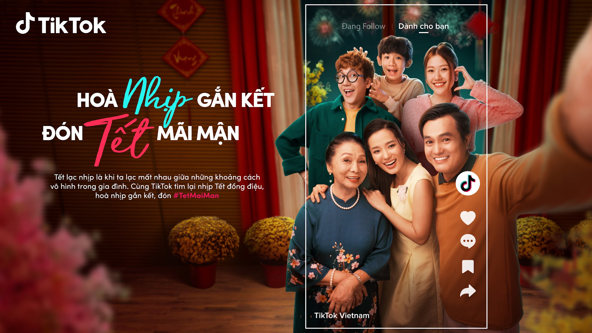 Trong mỗi dịp Tết, gia đình luôn trở thành câu chuyện được bàn tán sôi nổi trên cộng đồng mạng. Tuy nhiên, đoàn tụ ngày Tết cũng là lúc các thành viên trong gia đình nhận ra sự “lạc nhịp” đến từ khoảng cách thế hệ, lối sống, sở thích… Hiểu được điểu này, TikTok đã triển khai chiến dịch Tết Mãi Mận nhằm mang đến không gian an toàn để các thành viên cùng bắt nhịp và xóa nhòa khoảng cách thế hệ trong dịp Tết vừa qua.