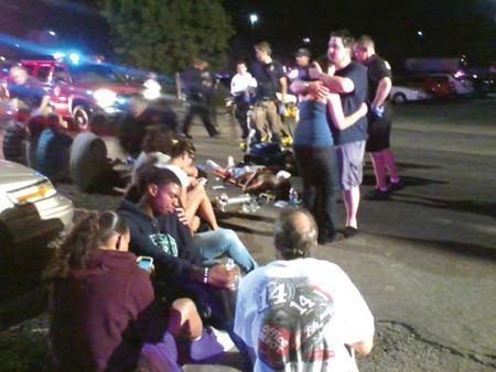 | Nạn nhân vụ xả súng tại rạp chiếu phim Century, Colorado tập trung tại bãi đậu xe |