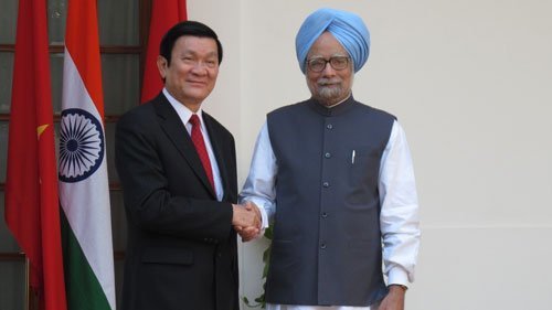 Chủ tịch nước Trương Tấn Sang và Thủ tướng Ấn Độ Manmohan Singh. Ảnh: VOV |