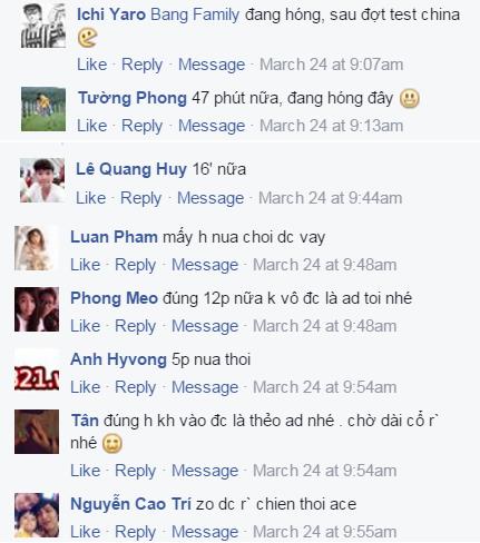 Sau khi chính thức mở cửa vào ngày 28/03, làn sóng game thủ trên fanpage ngày càng dâng cao. Thêm vào đó admin luôn tổ chứng những minigame, sự kiện thể lệ đơn giản dễ chơi với phần thưởng là vật phẩm ingame khiến cho cộng đồng ngày càng sôi nổi thích thú. Đơn cử như sân chơi báo danh nhận code VIP vừa kết thúc tại fanpage đã nhận được gần 1000 lượt like, share và comment.