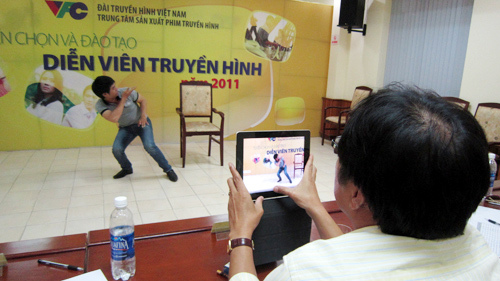 Giám khảo dùng iPad để chụp hình thí sinh.