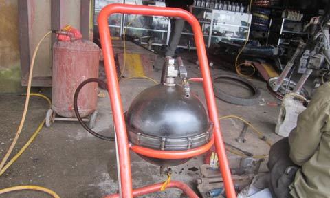 "Quan sát khách hàng, sau khi chúng tôi rửa xe xong, nhiều người cứ ngồi xuống kiểm tra gầm xe đã sạch chưa. Tôi đã chế tạo ra cái kích hơi này để kích xe lên, vừa tiện cho mình rửa xe, vừa để khách hàng thấy gầm xe họ đã sạch”. Tôi cũng vừa chế tạo ra bình phun tuyết rửa xe để tránh ăn tay và giảm được ½ thời gian rửa xe.