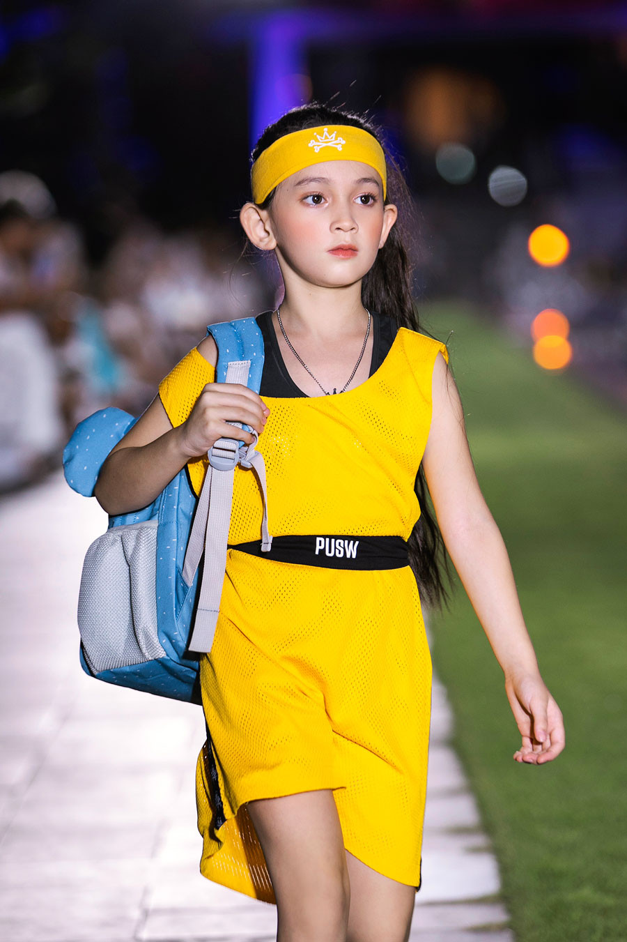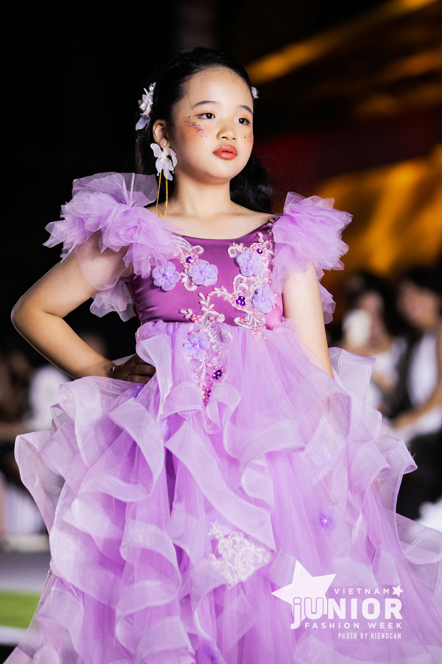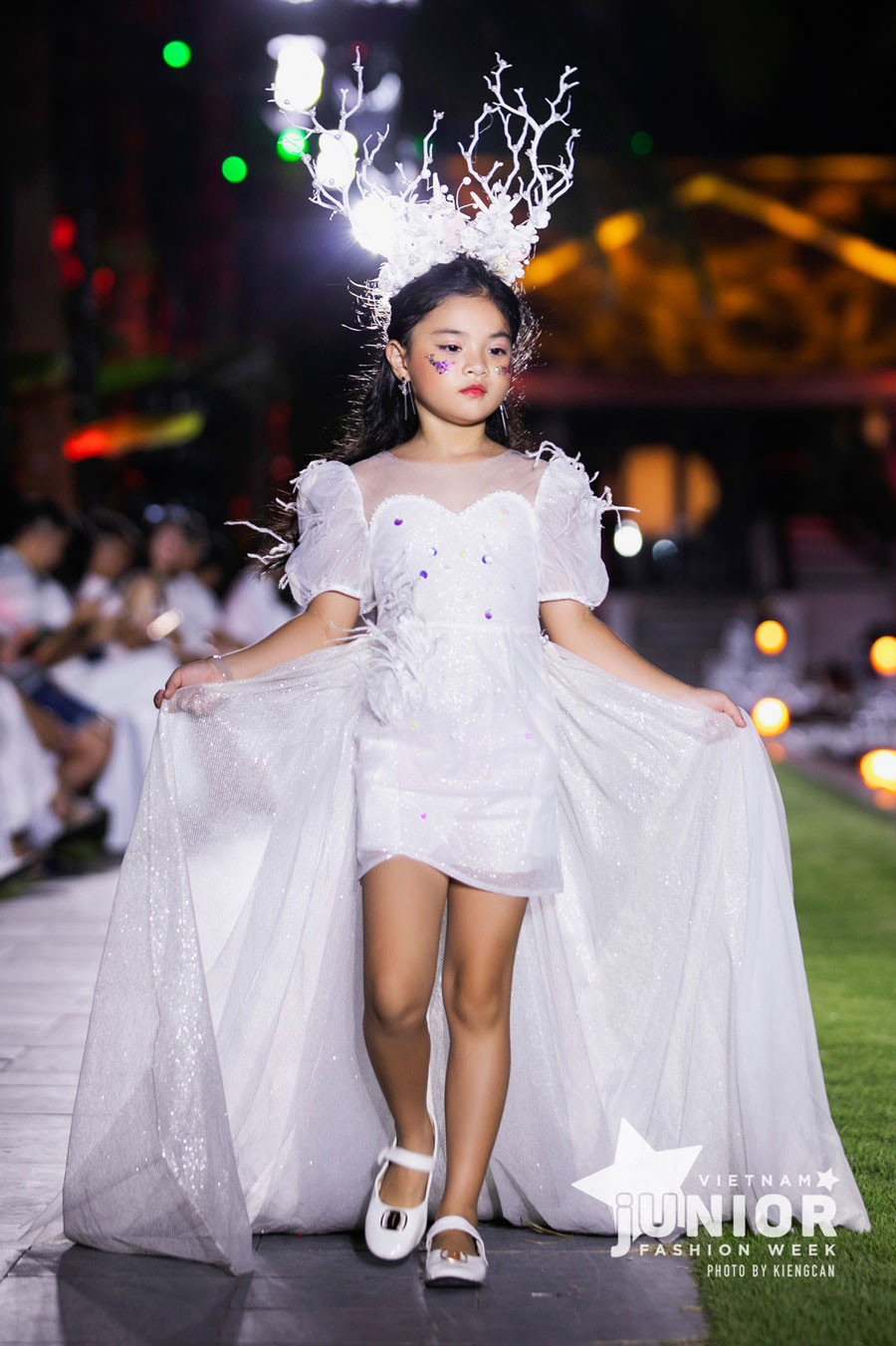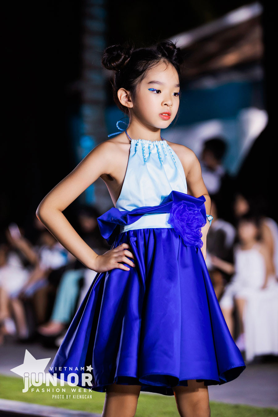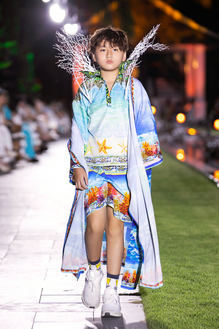 Bộ sưu tập 'Kids are the future' với sự xuất hiện lần lượt của mẫu nhí Chi Linh, Kevin Nam trong phần mở và kết màn đã lấy được những tràng vỗ tay của khán giả. “Hãy lắng nghe từ thế hệ tiếp theo để thấu hiểu và phát triển cùng họ. Vì thế hệ trẻ chính là nhân tố quyết định sự phát triển của đất nước hay bất kì loại hình nghệ thuật nào”, đó là thông điệp nhà thiết kế muốn lan tỏa đến mọi người trong bộ sưu tập này.Bí mật của đại dương mang đến dấu ấn độc đáo. Nhà thiết kế muốn nhấn mạnh tầm quan trọng của bảo vệ môi trường và việc gieo ý thức vào tâm hồn con trẻ - chủ nhân tương lai đất nước với phần mở màn của mẫu nhí Khánh Ngọc và bé Thỏ giữ vai trò vedette.'Black Swan' - tên bộ sưu tập lấy cảm hứng từ hình ảnh của thiên nga đen cùng những chiếc lông vũ tượng trưng cho vẻ đẹp kiêu sa, cùng sự biến đổi không ngừng để toả sáng, vươn tới vẻ đẹp hoàn mỹ.Mẫu nhí Lư Huệ San mở màn bộ sưu tập 'Rainbow over the sea – Cầu vồng trên biển' và cặp mẫu nhí Khánh Vy – Thanh Hà giữ vai trò vedette. Được lấy cảm hứng từ các gam màu của cầu vồng xuất hiện trên biển, những chiếc đầm được cắt xẻ một cách tinh tế từ kiểu dáng đến các họa tiết trên từng bộ trang phục.Gia đình Khánh Đơn – Huỳnh Như xuất hiện trong phần chào kết bộ sưu tập cũng là màn trình diễn cuối cùng của tuần lễ thời trang kép lần này. Đưa con trai lớn và con gái út lên sàn diễn, cặp đôi trẻ nhận được cảm tình của khán giả khi kết hợp cùng các thành viên tổ ấm nhỏ, mang đến cho người xem hình ảnh hạnh phúc viên mãn. Đó cũng là mong muốn của siêu mẫu Xuân Lan gởi đến những khán giả có mặt tại buổi diễn.