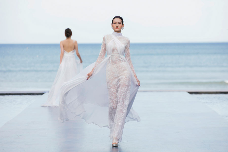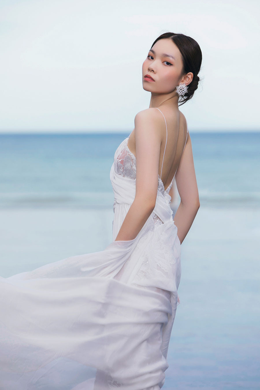 Nữ nghệ sĩ đa năng chứng minh khả năng catwalk ấn tượng trong không gian lãng mạn và quyến rũ. “Hãy quan tâm tới thiên nhiên, bảo vệ vùng biển đảo Việt Nam và giảm rác thải nhựa ra đại dương, giữ cho môi trường trong sạch để các sinh vật biển được phát triển tự nhiên” là thông điệp bộ sưu tập này gửi gắm.
