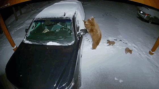 Gấu mẹ dẫn theo đàn con mở cửa lẻn vào ô tô
