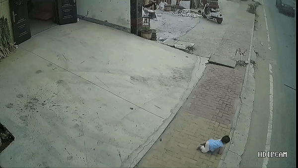 Bé gái 1 tuổi bò ra đường giữa trưa, khoảnh khắc thót tim từ camera an ninh