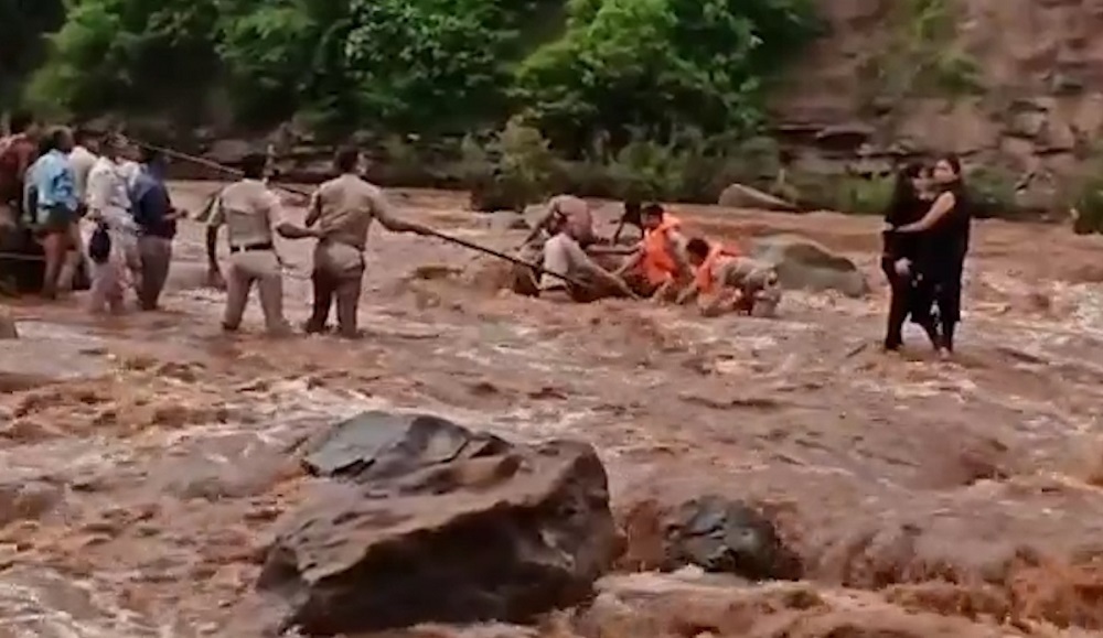 Nghẹt thở giải cứu 2 cô gái ra giữa dòng nước xiết chụp ảnh 'tự sướng'