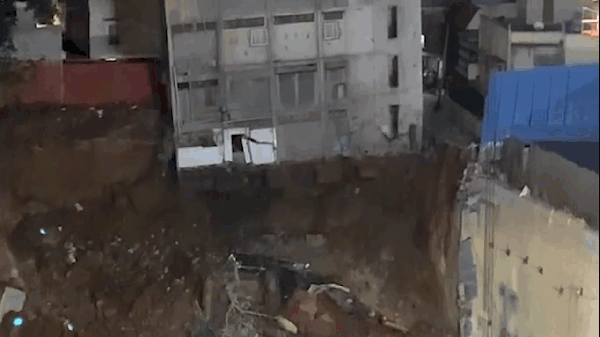 Nhà 4 tầng đổ sập xuống móng cao ốc đang xây