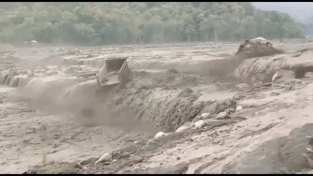 Lũ kinh hoàng cuốn bay 2 xe tải