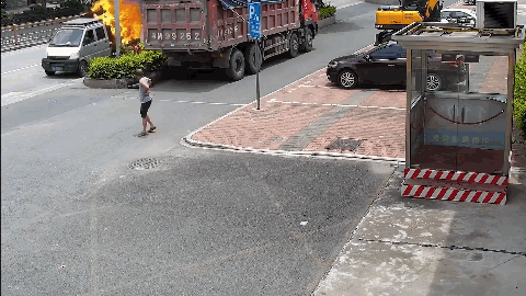 Tài xế lao thẳng xe đang bốc cháy ngùn ngụt tới sở cứu hỏa