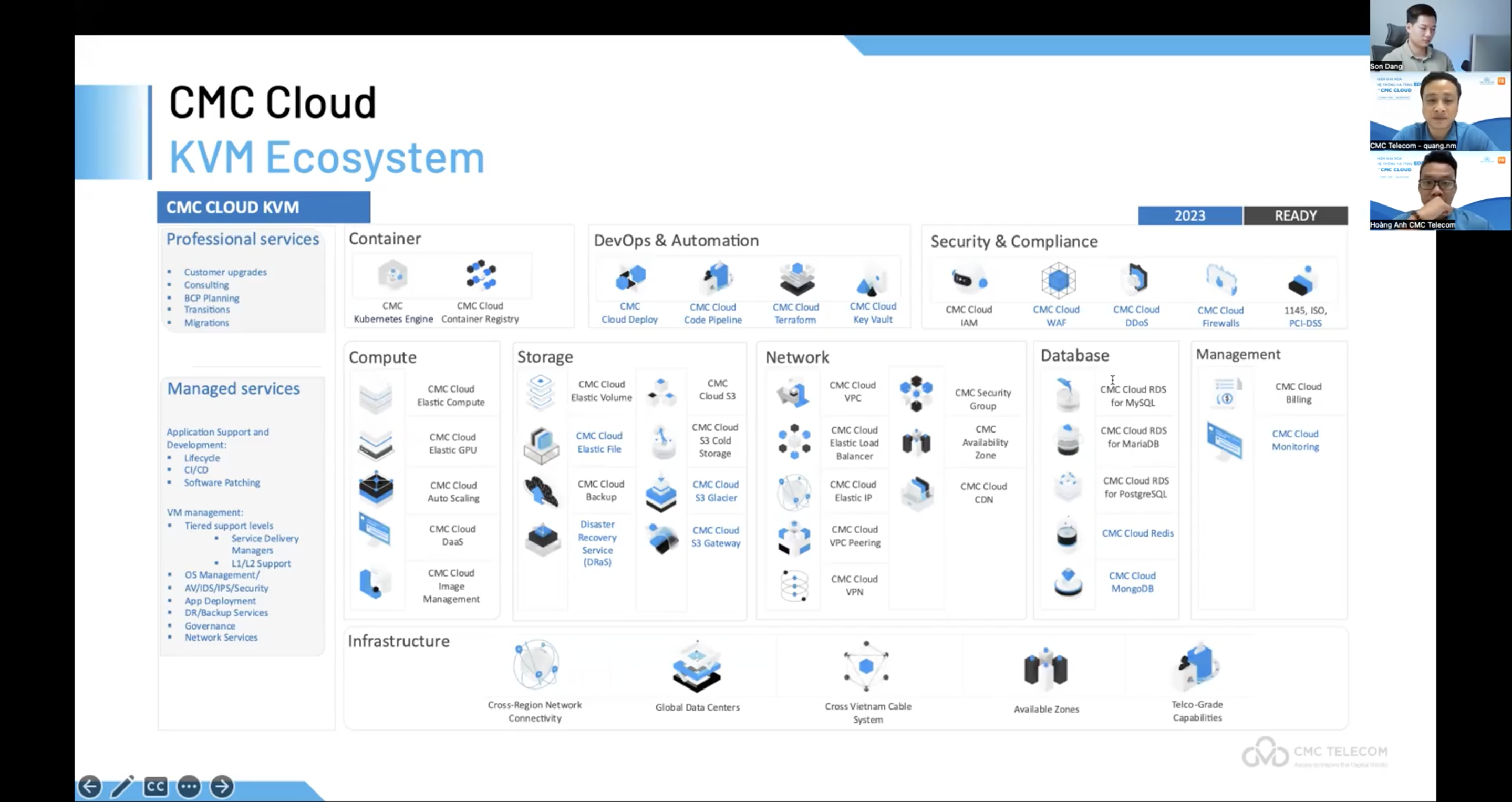 Bên cạnh đó, chuyên gia điện toán đám mây đến từ CMC Telecom còn giới thiệu giải pháp lưu trữ và truy xuất dữ liệu nhanh chóng CMCCloud Storage S3 và giải pháp phân bố lưu lượng nội dung truyền tải CMCCloud Content Delivery Network. Qua đó, các video giáo dục có dung lượng lớn và độ phân giải cao được tải lên đám mây để lưu trữ một cách nhanh chóng và an toàn, đảm bảo trải nghiệm học tập toàn vẹn cho người học.