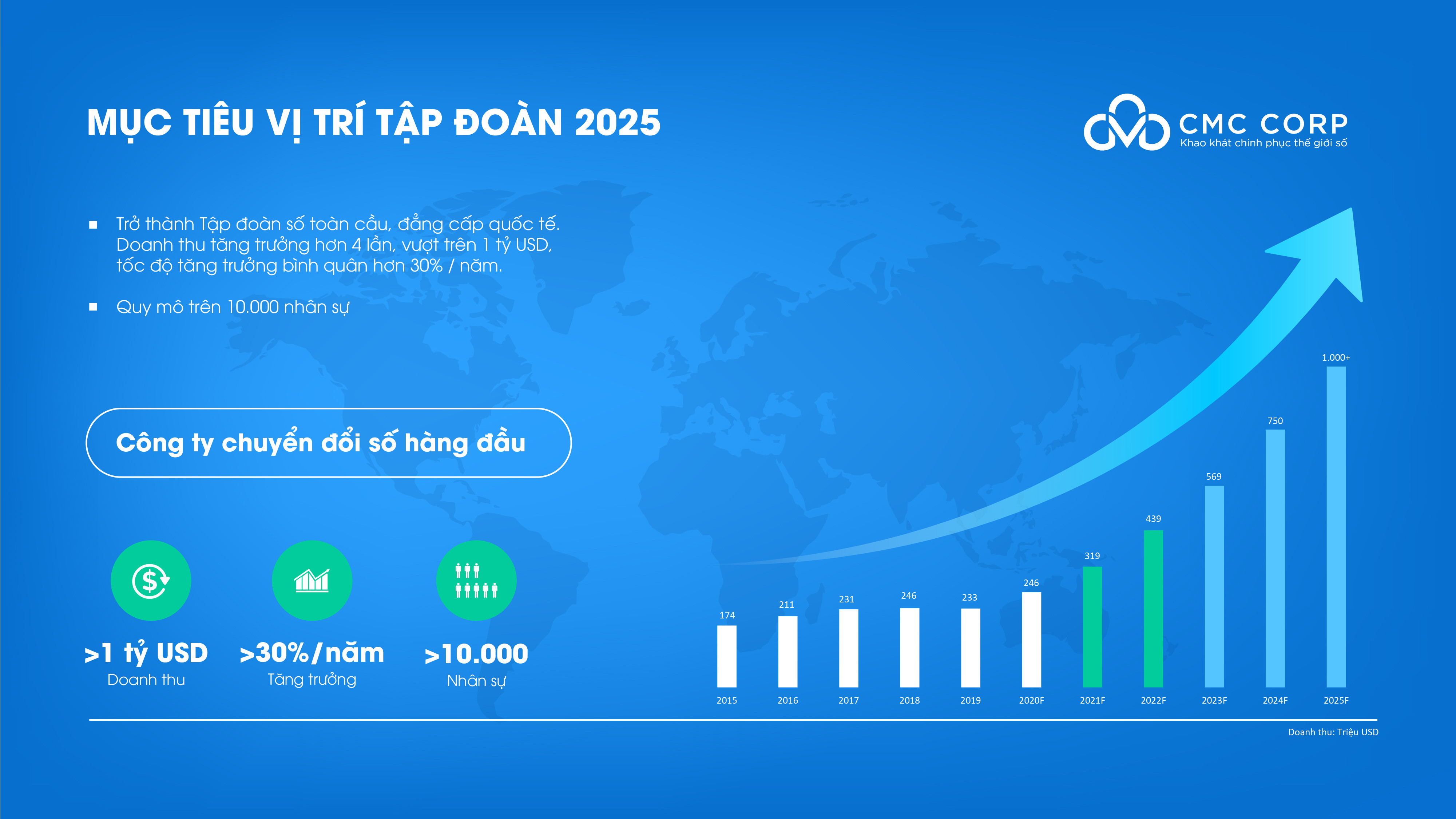 Chuyển đổi số là chiến lược trọng tâm để đưa “con tàu” CMC tăng tốc vươn ra “biển lớn”, trở thành doanh nghiệp toàn cầu với doanh thu tỷ đô vào năm 2025, quy mô nhân sự của tập đoàn cần đạt trên 10.000 người. Chính vì vậy, nhân sự có vai trò quan trọng để thúc đẩy tập đoàn đạt được mục tiêu đã đề ra.
