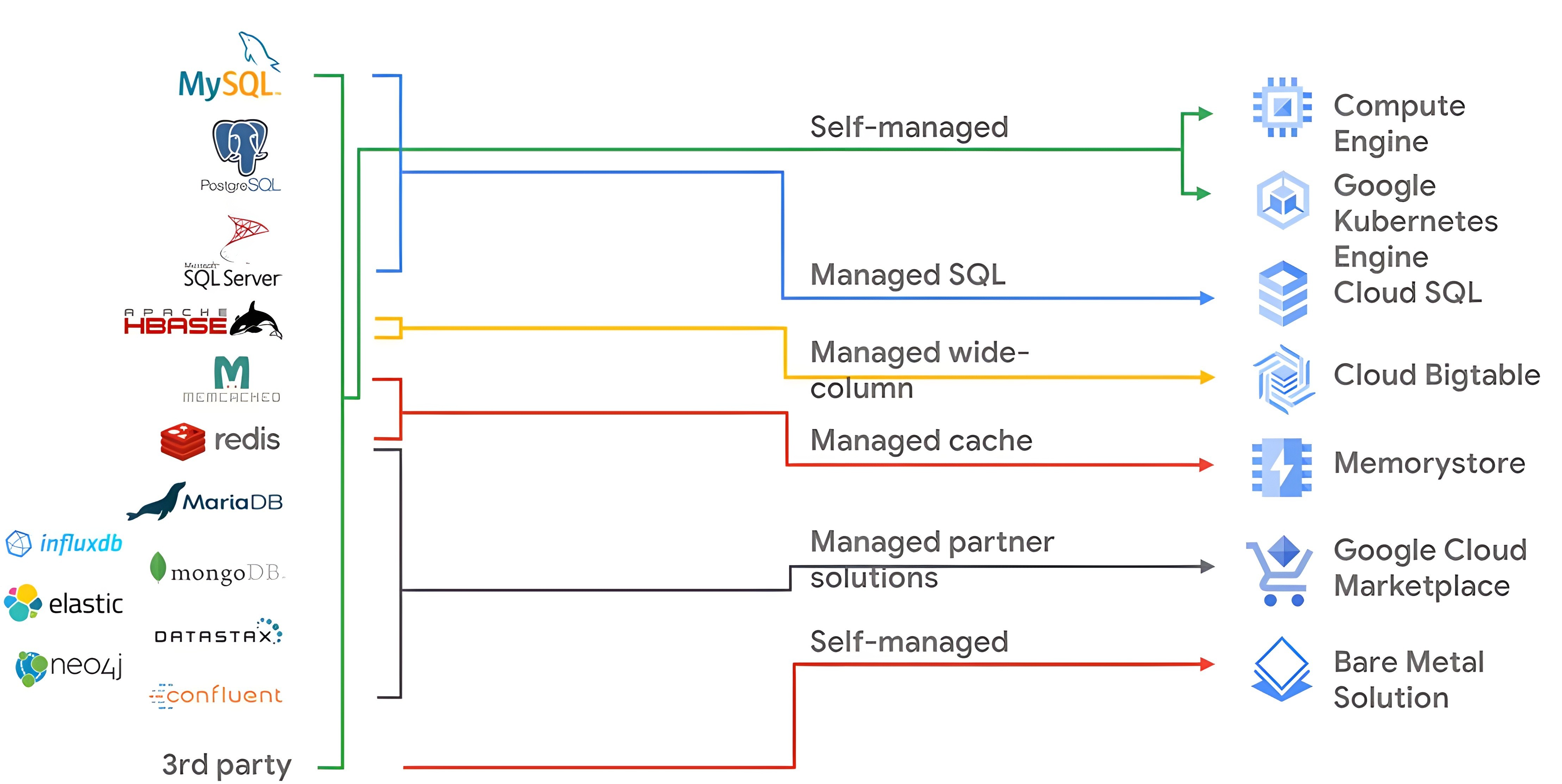 Memorystore: Dùng để quản lý Redis Database phục vụ cho lưu trữ dữ liệu trong bộ nhớ RAM. Nó được ứng dụng chính trong gaming, bộ nhớ cache, bảng xếp hạng và chat/bảng tin trên mạng xã hội.