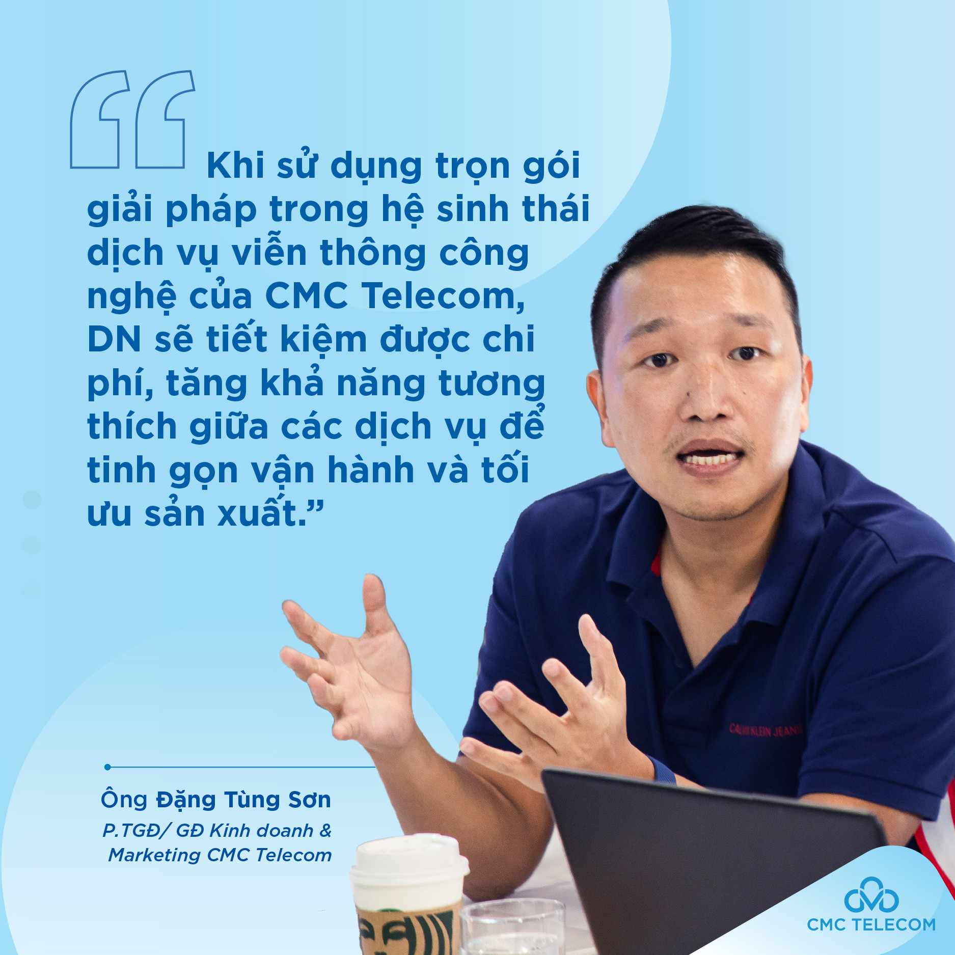 Đại diện CMC Telecom, ông Đặng Tùng Sơn - Phó Tổng giám đốc, Giám đốc Kinh doanh & Marketing chia sẻ: “Năng lực Work Transformation sẽ giúp chúng tôi gia tăng nhiều lợi ích hơn nữa cho khách hàng sử dụng Google Workspace. Bên cạnh đó, khi sử dụng trọn gói giải pháp trong hệ sinh thái dịch vụ viễn thông công nghệ của CMC Telecom, DN sẽ tiết kiệm được chi phí, tăng khả năng tương thích giữa các dịch vụ để tinh gọn vận hành và tối ưu sản xuất.”