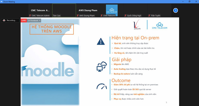 Bên cạnh đó, “bài toán” về lưu trữ dữ liệu lớn của Đại học Thăng Long cũng được giải quyết tức thời bằng dịch vụ lưu trữ đám mây Elastic File System (EFS) của AWS. Việc “migrate” ứng dụng lên AWS đã giúp hệ thống Moodle của Đại học Thăng Long tiết kiệm đến 30% chi phí so với việc vận hành hệ thống cũ.