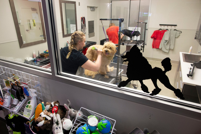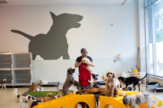 Khi chủ nhân của chúng phải tham dự các cuộc họp, những con chó có thể được gửi tại một điểm chăm sóc tập trung, nơi chúng có thể được spa tắm táp với dầu gội riêng, sau đó được sấy khô và làm móng. Chúng cũng có thể chơi trong khu vực được thiết kế riêng, với các cảnh quan như trụ cứu hỏa giả và cỏ nhân tạo.