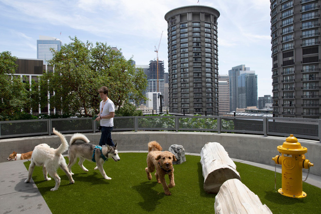 Và xen lẫn giữa không gian ấn tượng này, là hàng trăm con chó. Đây cũng chính là những sinh vật tuyệt vời và đặc trưng nhất tại trụ sở Amazon này. Bạn cũng nên biết rằng ở thành phố Seattle, số lượng chó thậm chí đông hơn cả số lượng trẻ em. Và có hơn 7.000 con chó được đăng ký để đến làm việc tại các văn phòng của Amazon tại đây. Năm ngoái, con số này là hơn 6.000.