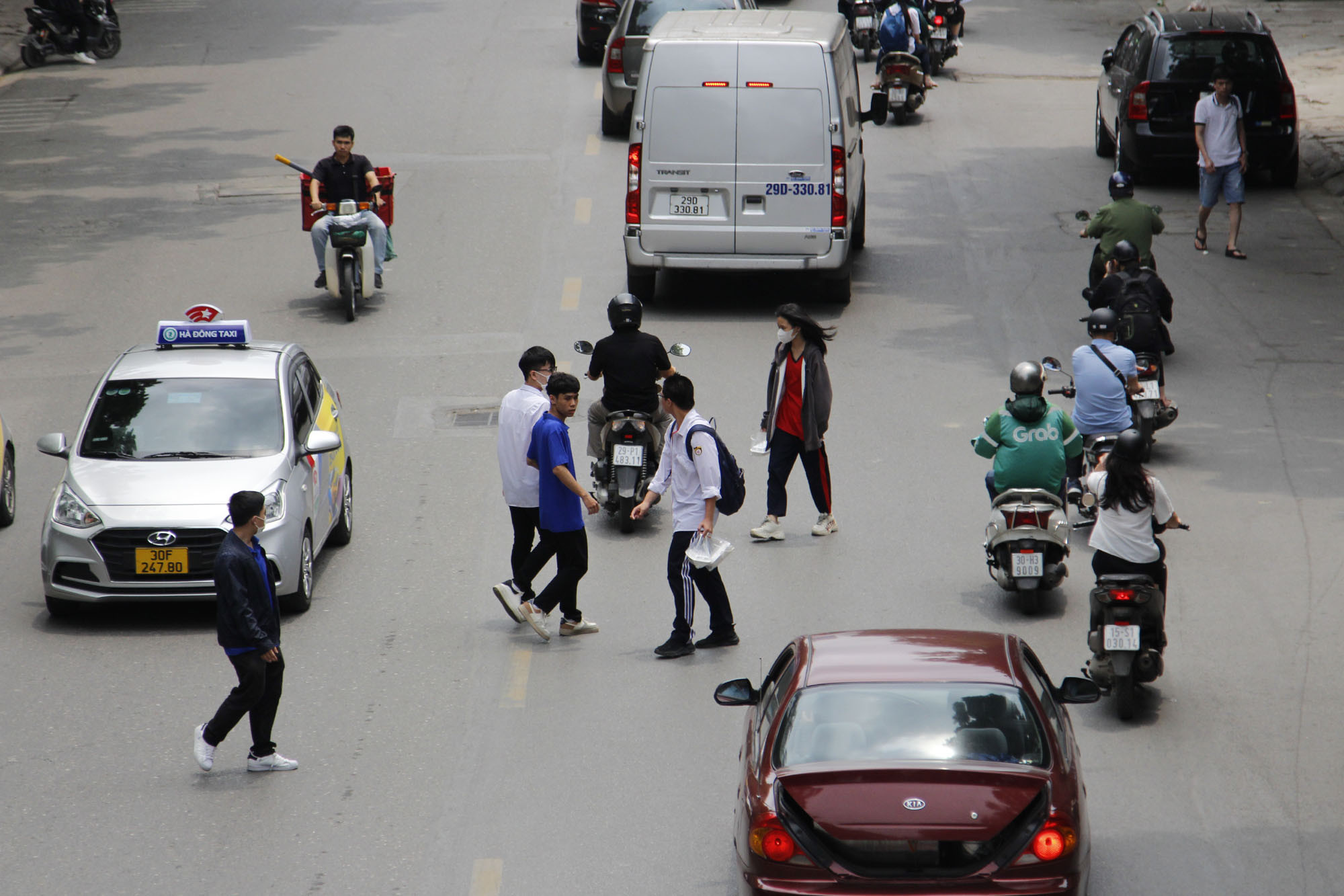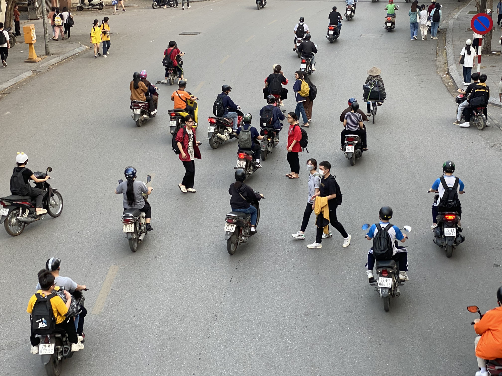 Tại quận Cầu Giấy, cầu bộ hành trên đường Trần Quốc Hoàn (đoạn Trường THPT Nguyễn Bỉnh Khiêm - Cầu Giấy) gần như không phát huy được hiệu quả. Rất đông học sinh băng qua đường bất chấp nguy hiểm.
