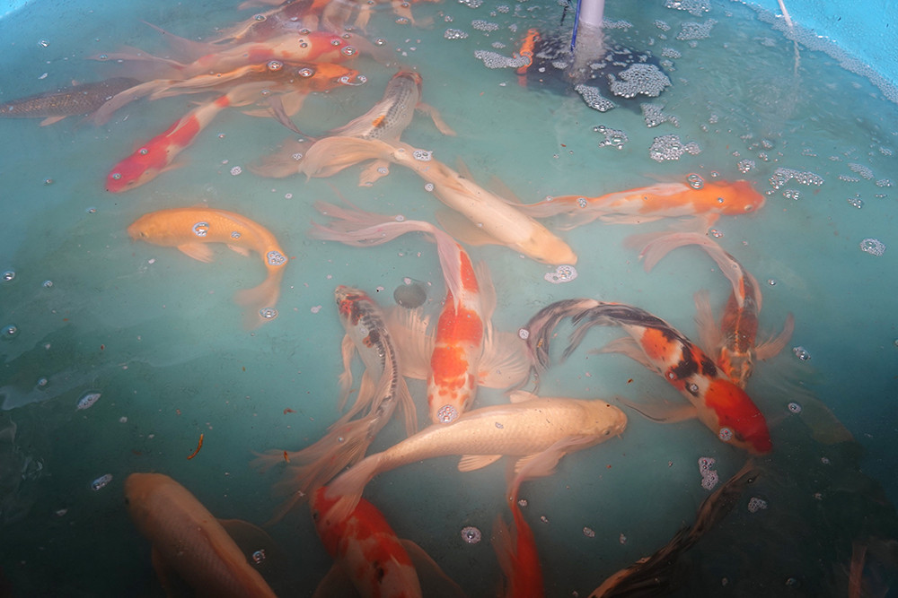Chị Ngân chia sẻ, muốn cá Koi phát triển khoẻ mạnh, người nuôi phải am kỹ thuật và tập tính của loài này. Theo đó, nước nuôi cá được lấy từ sông, sau đó được đưa vào hầm chứa để xử lý; nước phải ấm, đột pH từ 7,3-7,5 và phải dưỡng cá bằng cách rải muối và viên sủi C.