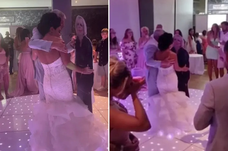 Video của buổi lễ cho thấy cô dâu bước lên sàn khiêu vũ cùng với cha mình, ông Colin Thomas, 69 tuổi để nhảy điệu cha và con gái. Khi cả hai lắc lư theo bài “Wind Beneath My Wings” của Bette Midler, họ giữ chặt tấm bìa cứng của bà Linda để theo một cách nào đó, bà có thể hoà nhịp vào khoảnh khắc hạnh phúc này.