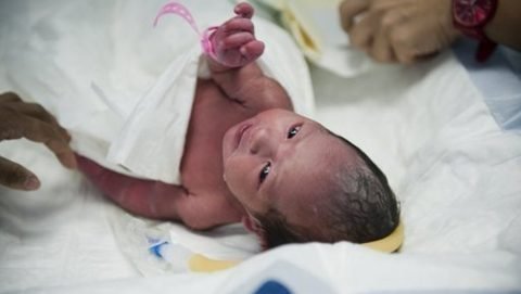 Mặc dù xe cứu hộ đã được gọi tới sau đó, nhưng cô đã vỡ ối và sinh hạ một bé trai ngay tại hôn trường vào lúc 12h15.