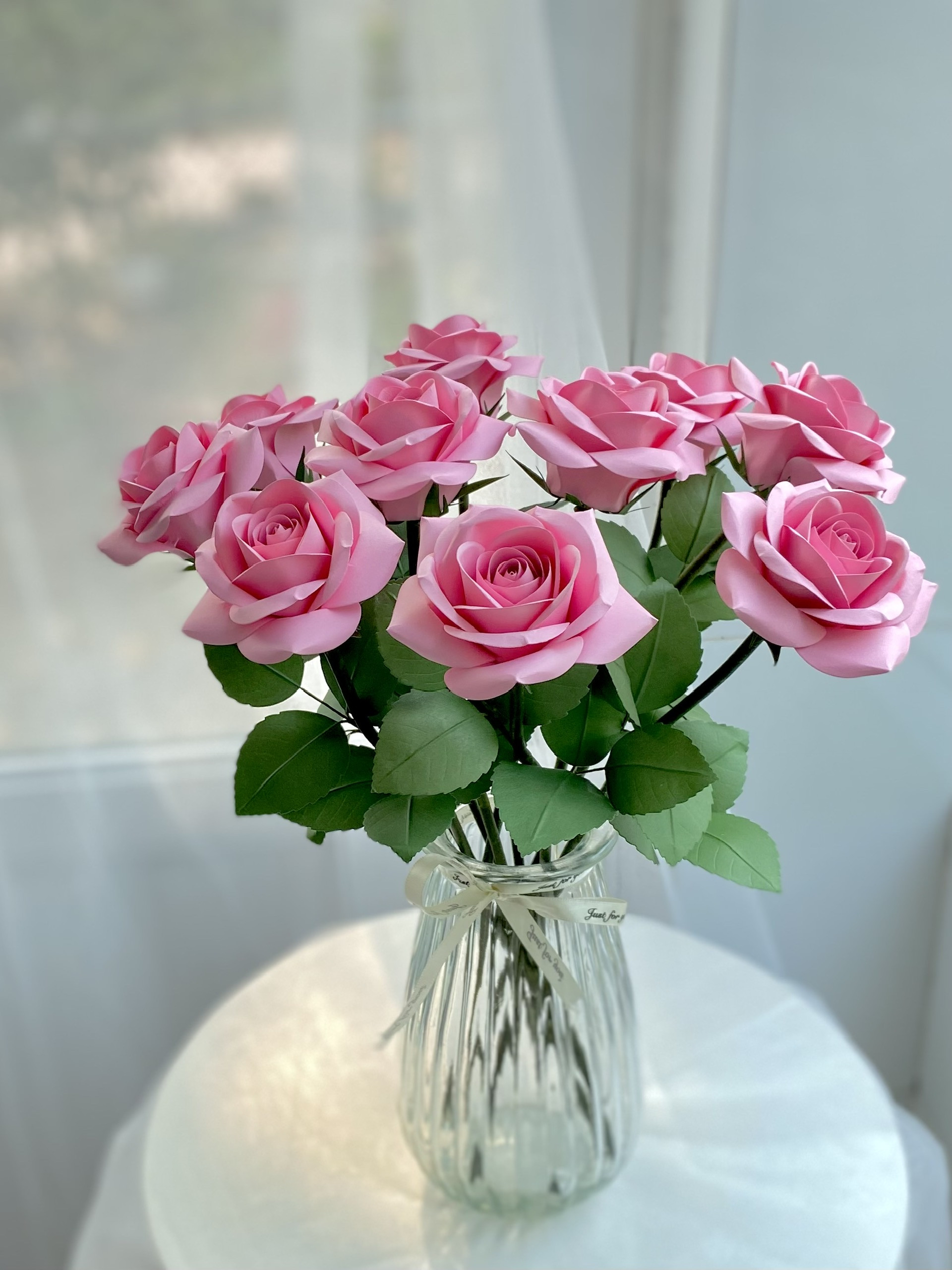 Sau hơn 6 năm biết đến nghệ thuật làm hoa giấy, Trang có thể làm được gần 50 loại hoa khác nhau, từ sen, cúc, hồng, đồng tiền, xương rồng, dâu tây… Mỗi tác phẩm là một phiên bản riêng, không giống nhau.
