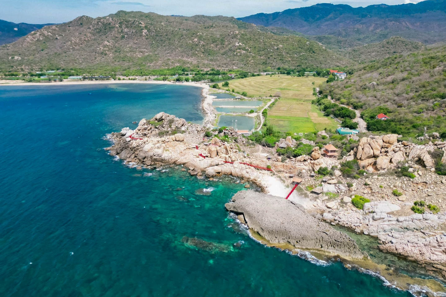Vịnh Vĩnh Hy, nằm cách trung tâm thành phố Phan Rang - Tháp Chàm (Ninh Thuận) khoảng 42km, gây ấn tượng với du khách bởi vẻ đẹp hoang sơ, vừa hùng vĩ, vừa nên thơ với những bãi cát trắng trải dài, những dãy núi đá cao chót vót và những dòng suối róc rách len lỏi giữa rừng cây xanh bạt ngàn.