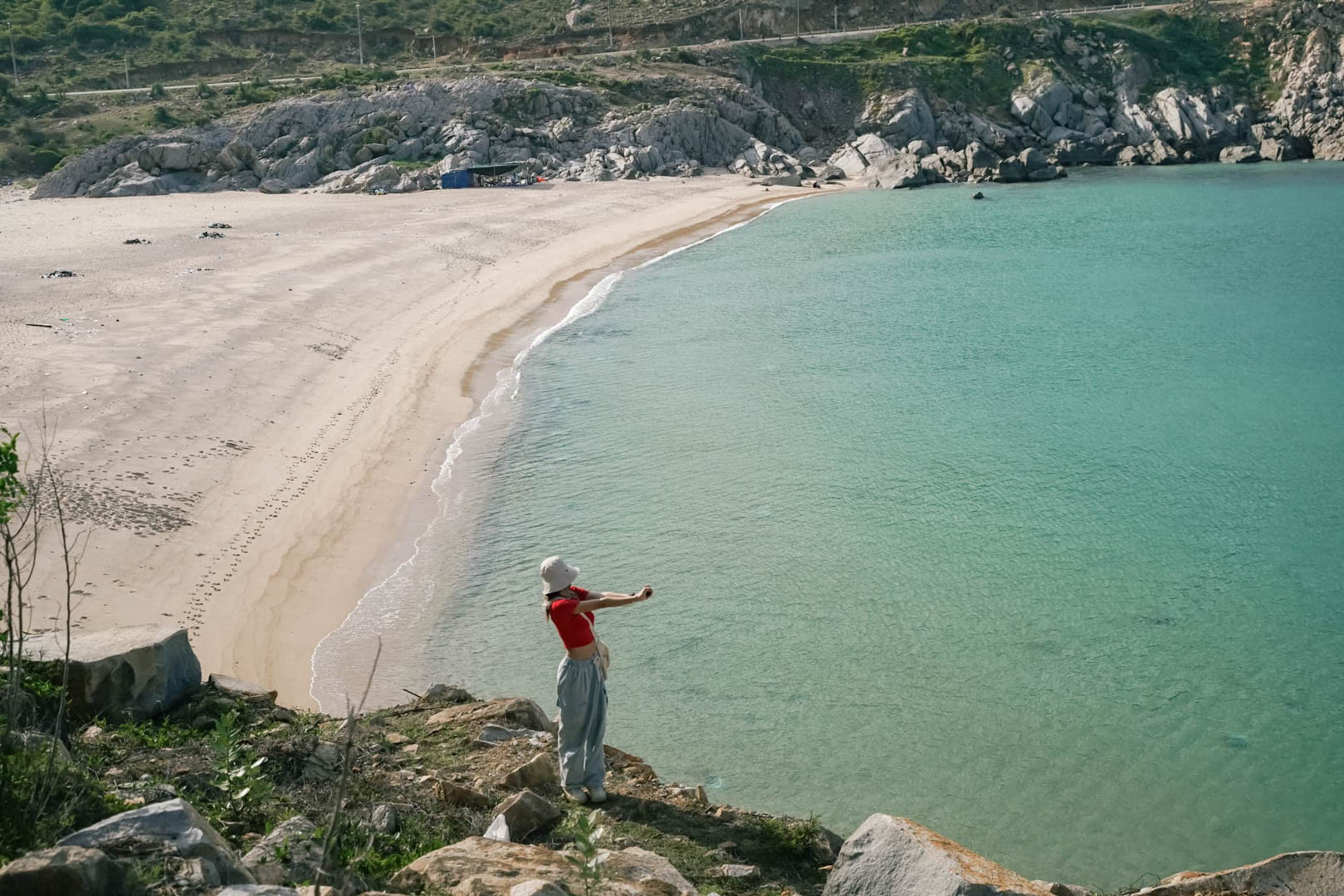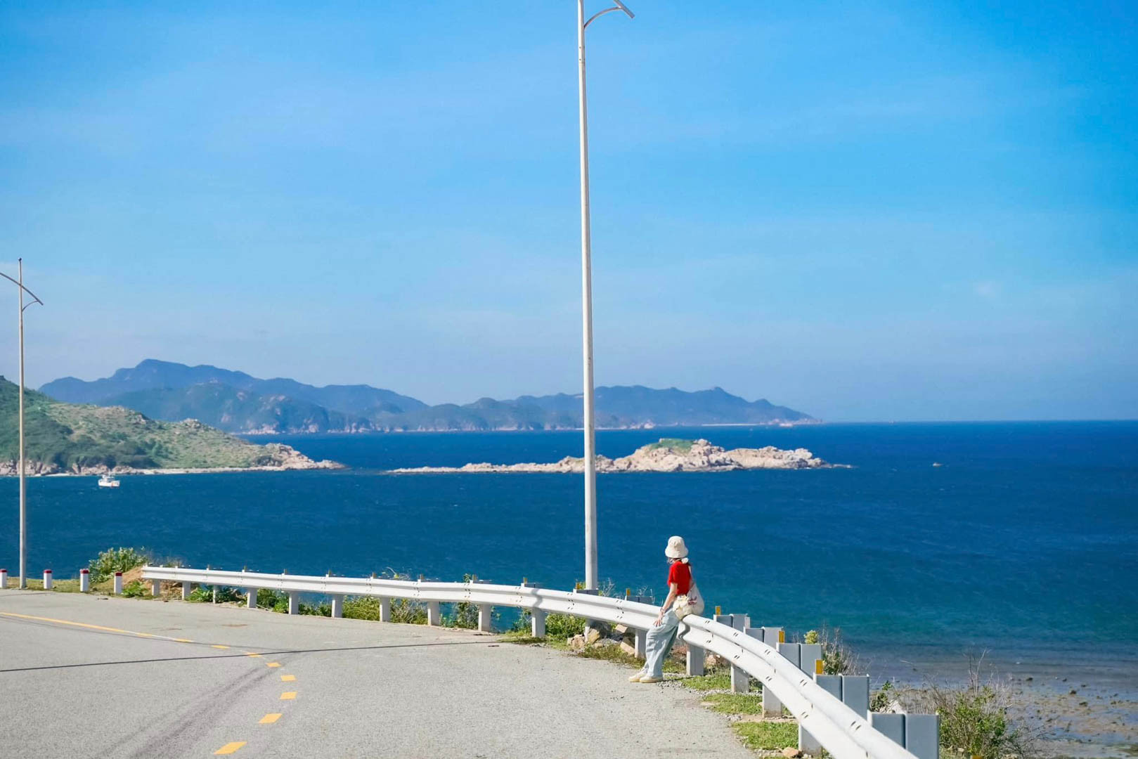 Ngày thứ hai tại Vĩnh Hy, cô gái Bắc Ninh thong thả đón bình minh sáng sớm, ngắm nhìn cuộc sống vùng biển hoang sơ rồi di chuyển đến cung đường ven biển Vĩnh Hy, nơi được mệnh danh là cung đường biển đẹp nhất Việt Nam.