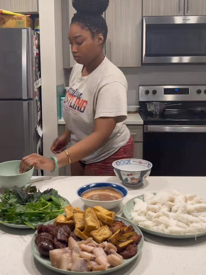 Thậm chí, những món “khó nhằn” không phải người Việt nào cũng làm được như phở bò, bún riêu, bún đậu mắm tôm, tiết canh vịt…, cô gái Mỹ đều chinh phục thành công.