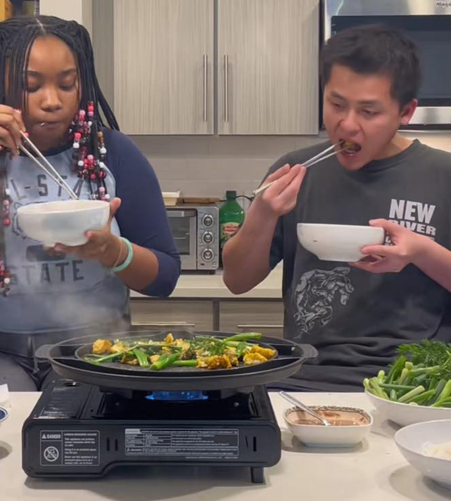 Cô thường xuyên vào bếp, tự tay chế biến món Việt để chiêu đãi bạn trai sống xa quê. Đây cũng là cách để cặp đôi thêm gắn bó và thấu hiểu nhau hơn, góp phần lưu giữ, duy trì và phát huy giá trị văn hóa ẩm thực truyền thống đặc sắc.